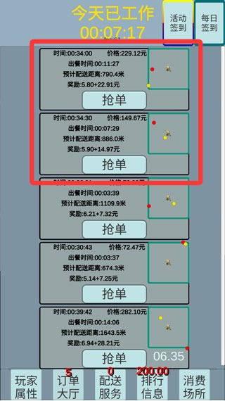 3、開(kāi)始工作后我們需要搶單送外賣來(lái)賺錢。