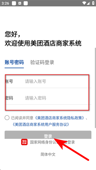 1、進(jìn)入登錄界面,選擇賬號(hào)密碼登錄,輸入賬號(hào)密碼后,點(diǎn)擊登錄。