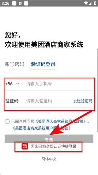 2、如果選擇驗(yàn)證碼登錄,需要切換到驗(yàn)證碼登錄,輸入信息后點(diǎn)擊登錄。