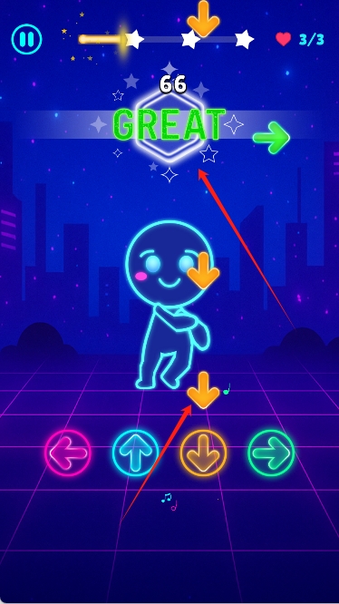 2、掌握多種節(jié)奏模式,面對(duì)復(fù)雜曲目與高速節(jié)奏,需精準(zhǔn)點(diǎn)擊,保持連擊,完成高難度舞蹈挑戰(zhàn)。