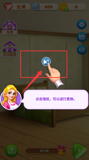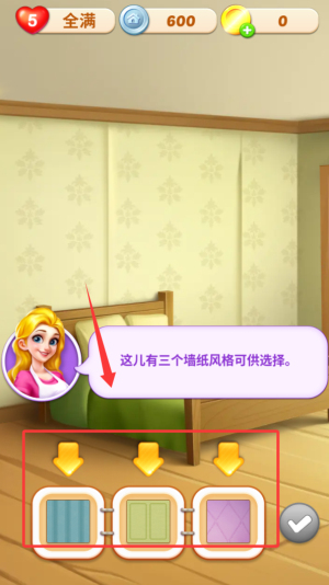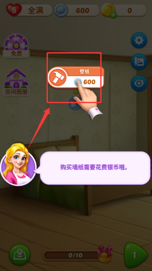 2、通過(guò)消除關(guān)卡積累銀幣資源,在商城界面兌換心儀的室內(nèi)裝飾素材與墻紙樣式。