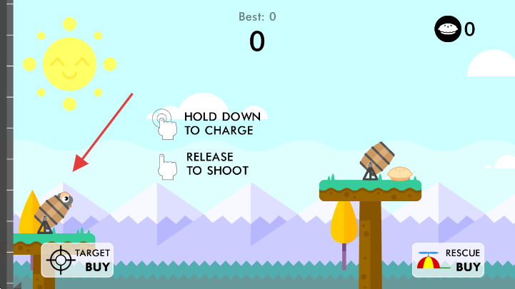 2、按住左側(cè)發(fā)射裝置,根據(jù)提示【HOLD DOWN TO CHARGE】進(jìn)行蓄力,調(diào)整角度后釋放,發(fā)射物體攻擊右側(cè)目標(biāo)。