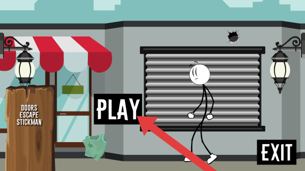 1、畫面呈現(xiàn)開始選擇場(chǎng)景,【PLAY】是開始游戲按鈕,“EXIT”為退出,火柴人角色和建筑等構(gòu)成初始畫面,屬于動(dòng)作解謎類火柴人逃生冒險(xiǎn)的典型開局樣式。