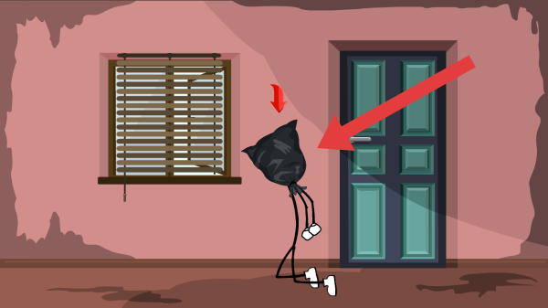 2、呈現(xiàn)火柴人角色(用袋子套頭樣式)在房間內(nèi)嘗試開門逃生的場(chǎng)景,屬于火柴人冒險(xiǎn)解謎常見的關(guān)卡情境,利用火柴人形象和密室逃脫玩法,推動(dòng)玩家解謎闖關(guān)。
