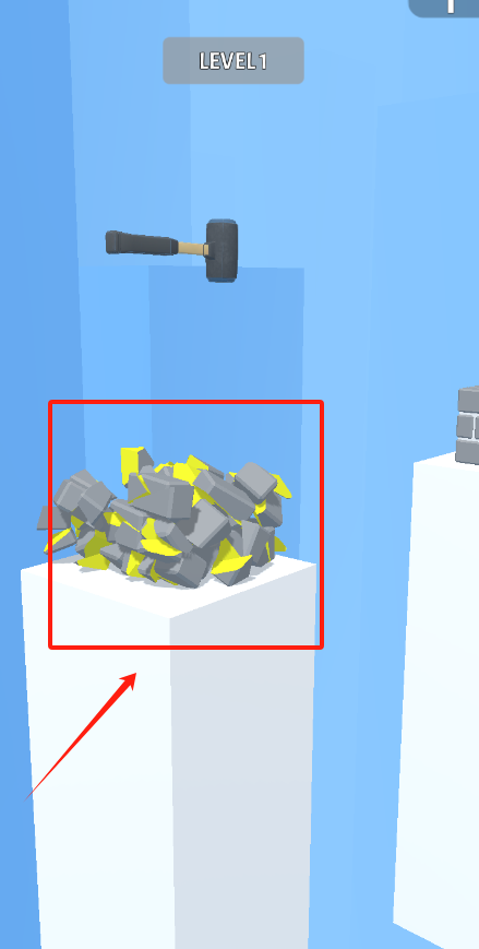 2、進入第一關(guān),看準(zhǔn)空中的錘子砸向碎塊,等它落下時點屏幕把碎塊全砸飛就行。