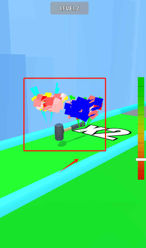 3、到第二關(guān),用錘子敲碎彩色方塊,注意看右側(cè)能量條,攢滿就能放大招啦。