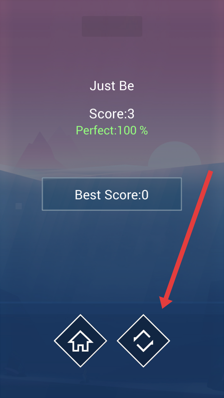 1、游戲結束后,界面展示本次分數(shù)、完美度與歷史最佳,點擊左側【房子圖標】回主頁,或右側重玩圖標開啟新挑戰(zhàn)。