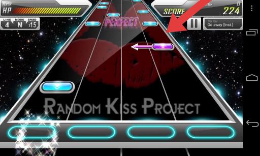 1、進(jìn)入演奏界面,跟隨滑動音符(如紫色箭頭)精準(zhǔn)點(diǎn)擊,獲取【PERFECT】判定,同時(shí)關(guān)注HP條與分?jǐn)?shù)(SCORE),保障演奏續(xù)航與得分。