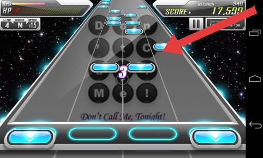 2、演奏過程中,按節(jié)奏點(diǎn)擊下落的藍(lán)色音符,積累連擊數(shù)(如界面“3”),提升分?jǐn)?shù)(SCORE),把控節(jié)奏是獲取高評關(guān)鍵。