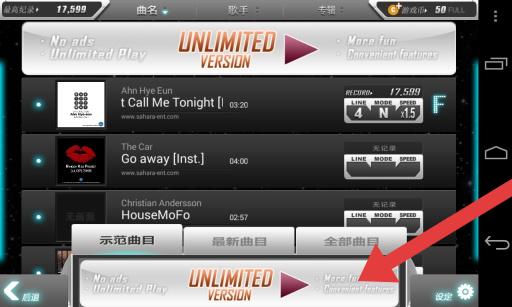 3、在歌曲列表頁,選擇曲目、難度(N15)開啟演奏,還可通過【示范曲目】【最新曲目】【全部曲目】分類查找想玩的音樂。