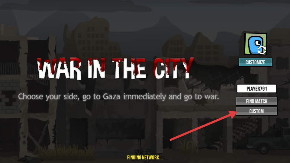 1、點下方的CUSTOM進入,左手搓屏幕指揮走位,右手狂點射擊鍵。