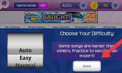 2、在難度選擇界面,從【Auto、Easy、Normal】中選適合難度(如Easy起步),點(diǎn)擊【Done】確認(rèn),逐步練習(xí)提升技巧。