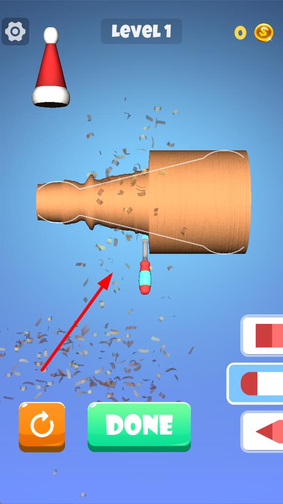 1、進(jìn)入局內(nèi)后查看關(guān)卡給出的曲線圖輪廓,選擇小刀或電鋸等工具,按曲線位置從左到右或從上到下裁剪木材。