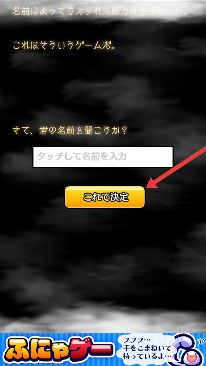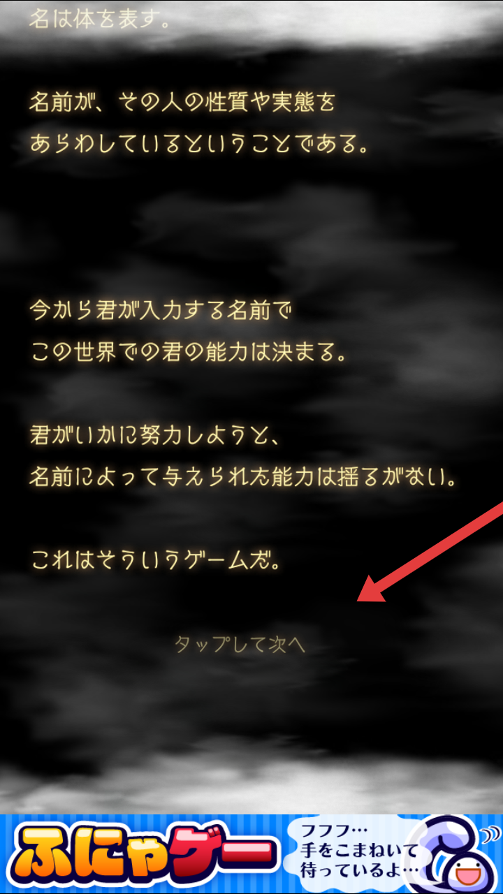 1、游戲開場提示“名は體を表す”,輸入的名字決定角色能力,點擊【タップして次へ】,進入取名環(huán)節(jié)。