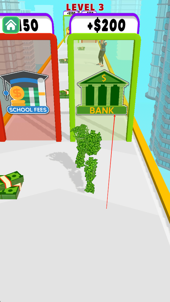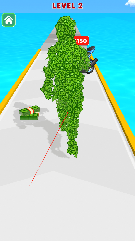 1、隨機(jī)事件挑戰(zhàn):每關(guān)有25%概率觸發(fā)“鈔票風(fēng)暴”,大量美刀從空中飄落但伴隨強(qiáng)風(fēng)干擾,或出現(xiàn)“稅務(wù)稽查”障礙,需快速躲避否則扣除50%美刀。
