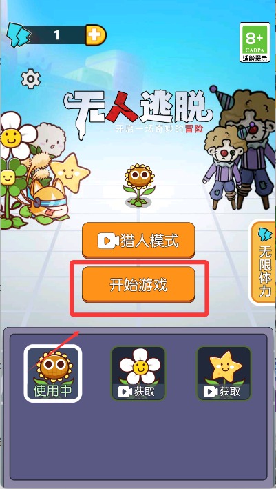 1、進(jìn)入游戲后點(diǎn)擊屏幕中間開始游戲開始。