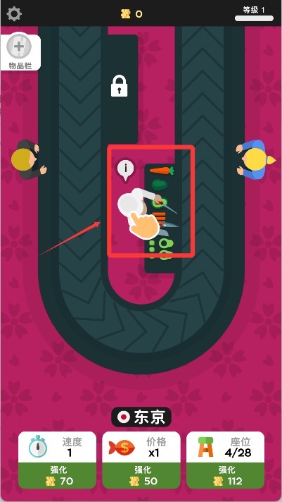 1、進入游戲后點擊屏幕中間的廚師可以制作壽司。