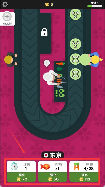 1、放置式經(jīng)營模式,即使暫離游戲也能獲得持續(xù)收益,壽司運送帶持續(xù)工作,保證離線期間也能保持盈利。