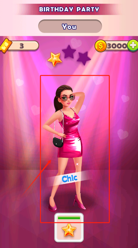 2、看女孩穿好了粉色裙子,點(diǎn)底下白色星星按鈕完成搭配,風(fēng)格選Chic。
