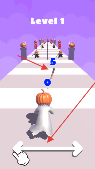 南瓜戰(zhàn)跑是一款集跑酷競技與對戰(zhàn)玩法于一體的卡通風(fēng)格佳作,玩家化身南瓜頭戰(zhàn)士,在6大秋季主題賽道上展開刺激冒險(xiǎn),3D卡通渲染技術(shù)打造出充滿秋意的場景,賽道上不僅有滾動(dòng)南瓜砲彈,需通過滑動(dòng)操作完成跑酷動(dòng)作,點(diǎn)擊屏幕揮動(dòng)魔法棒槌擊打?qū)κ?,踩踏眩暈對手可加速,配?2種特色道具,帶來邊跑邊戰(zhàn)的獨(dú)特體驗(yàn)。