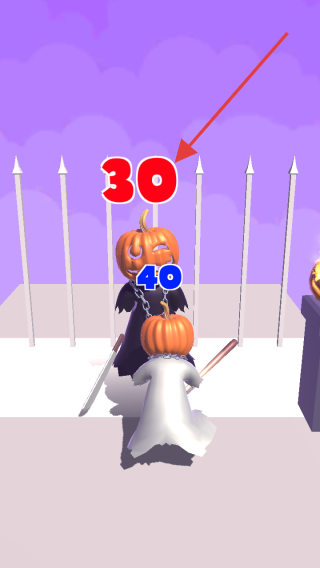 2、障礙敵人應(yīng)對:提前擊打滾動(dòng)南瓜使其爆炸,跳躍躲避干草叉同時(shí)攻擊敵人借力,優(yōu)先清除攔路對手。