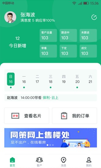 這是專為新房管家提供的客戶服務(wù)管理工具,將不同渠道的客戶匹配到合適置業(yè)管家,高素質(zhì)的管家為購買者提供專業(yè)的一對一購房全流程服務(wù)!