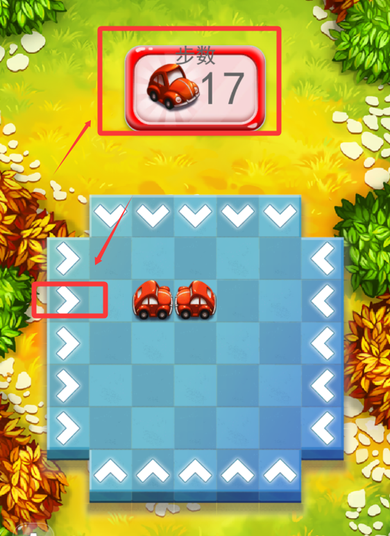2、根據(jù)上面提示的紅色車輛,再下面點(diǎn)擊一下這個(gè)往右的箭頭就可以把車輛開出去。