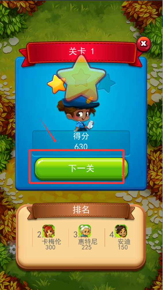 3、通關(guān)完成了,點(diǎn)擊一下關(guān)按鈕繼續(xù)挑戰(zhàn)。