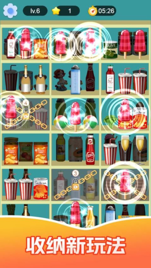1、創(chuàng)新收納消除機(jī)制,將整理貨柜與消除玩法巧妙結(jié)合,帶來新穎操作體驗(yàn)。玩家需通過合理擺放物品觸發(fā)消除,既考驗(yàn)規(guī)劃能力,又滿足解壓需求。