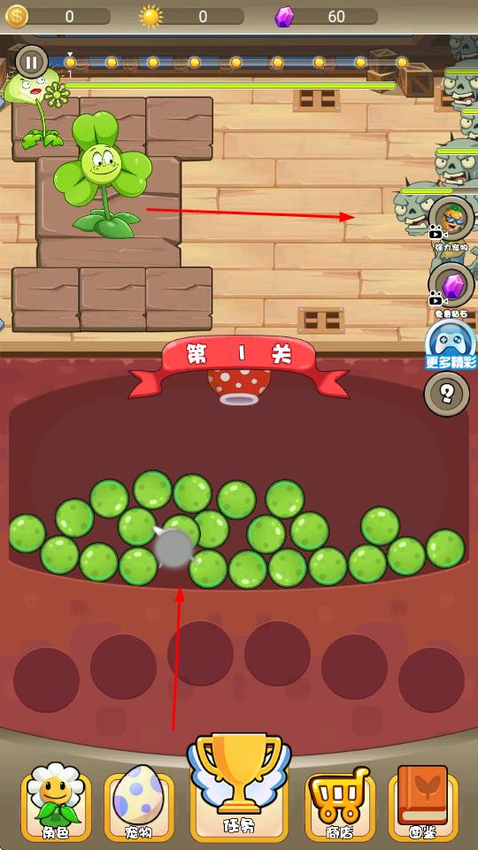 3、“闖關(guān)升級(jí)”,擊敗僵尸推進(jìn)關(guān)卡,獲取水晶、金幣獎(jiǎng)勵(lì),解鎖新植物、泡泡類(lèi)型。