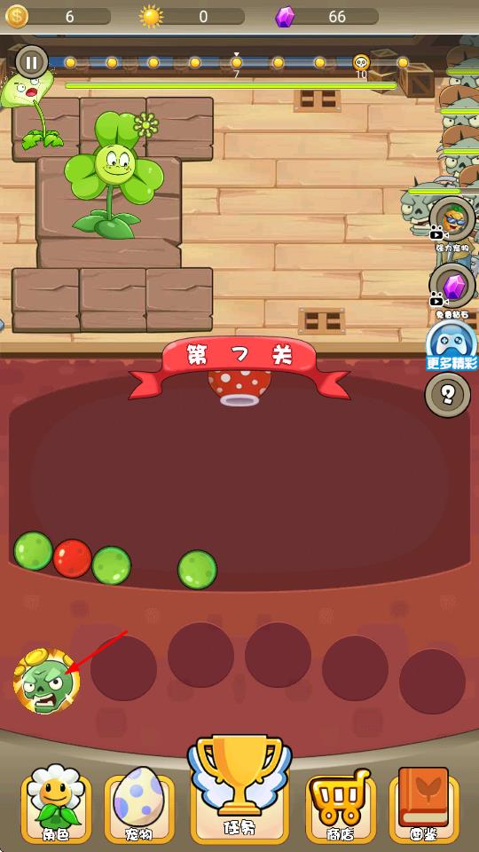 1、“彈射泡泡”,在關(guān)卡(第1、2、7關(guān))中,發(fā)射綠色泡泡,攻擊右側(cè)來(lái)襲僵尸。