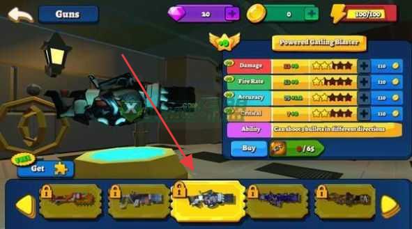 3、武器頁(yè):解鎖 / 購(gòu)買黃色框選武器,提升傷害、射速等屬性。