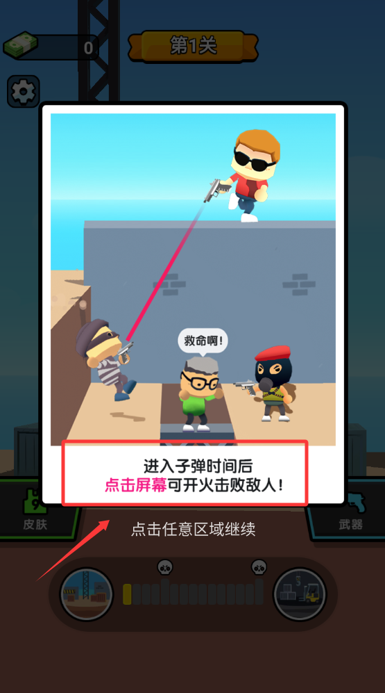 2、點(diǎn)擊屏幕開始進(jìn)入后看到敵人開槍射擊。