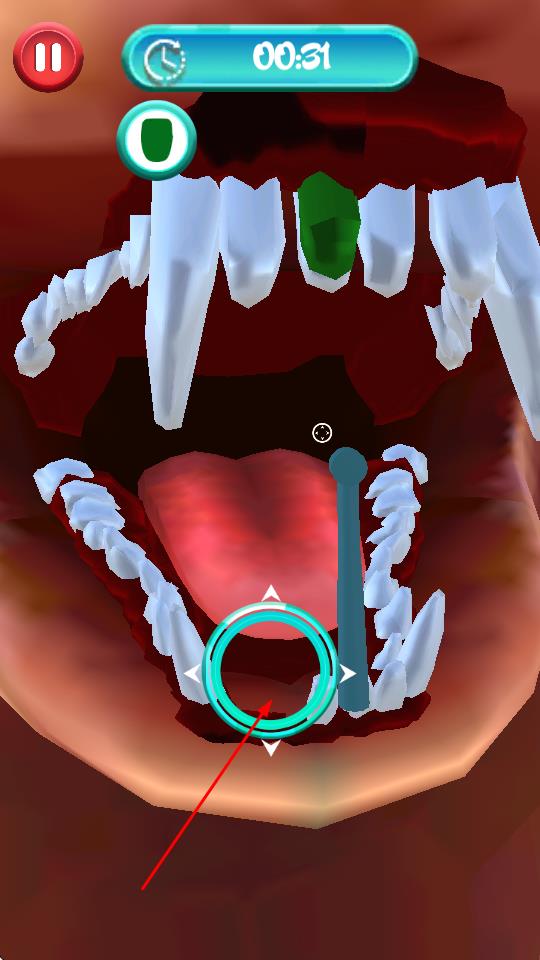 2、在動(dòng)物診療界面,使用檢查工具查看動(dòng)物口腔狀況,根據(jù)癥狀判斷病因,為制定治療方案做準(zhǔn)備。