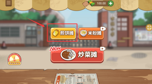 2、選擇煎餅攤經(jīng)營,開始賺取金幣挑戰(zhàn)。
