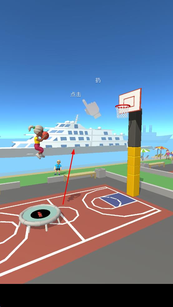 1、物理彈跳機制:基于真實物理引擎設計蹦床彈力系統(tǒng),點擊時長與角度精準影響跳躍軌跡,帶來極具代入感的灌籃操作體驗。