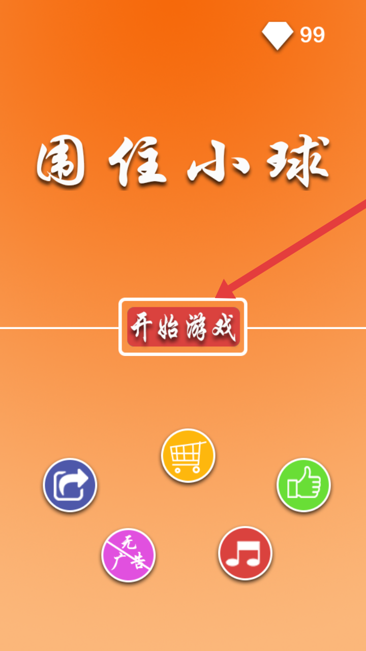 1、進(jìn)入圍住小球的游戲界面,需要點擊箭頭指向的【開始游戲】的按鈕,進(jìn)入關(guān)卡1開啟挑戰(zhàn)。