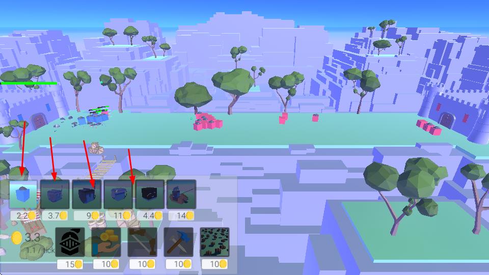 3、“對抗敵人”,建筑自動攻擊來襲敵人(粉色方塊敵人),守護城堡,完成關(guān)卡防御。