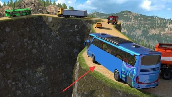 2、山路地形復(fù)雜:賽道聚焦崎嶇山路,包含連續(xù)彎道、陡峭斜坡、泥濘路段等,地形起伏大且路面狹窄,為大巴士駕駛增添多重難度。
