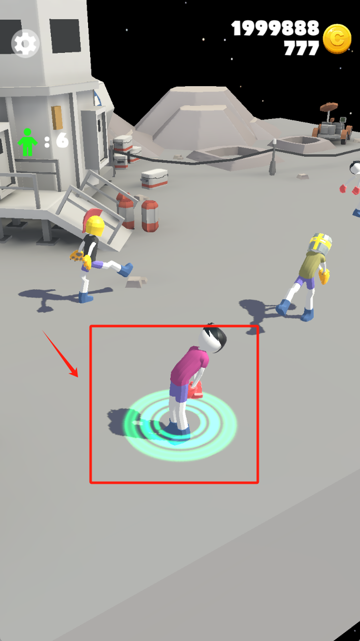 2、注意穿紫衣服且腳下有光圈的小人,控制他移動以避開其他角色;右上角會顯示當(dāng)前擁有的金幣(如1999888金幣)和分?jǐn)?shù)(如777分),方便了解自身資源情況。
