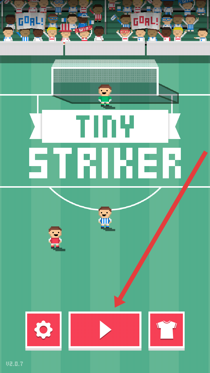 1、進入微射門的游戲界面后,點擊中間紅色【播放按鈕】開啟足球?qū)?zhàn),這是進入游戲的第一步操作。