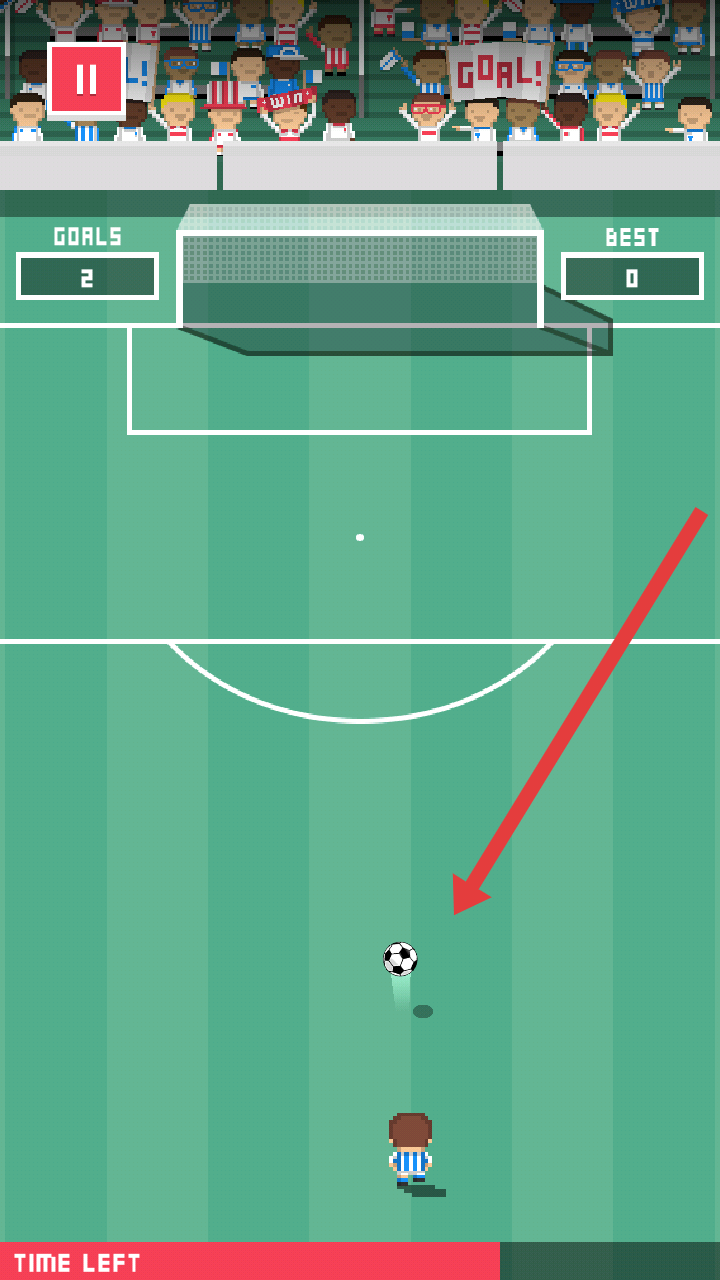 微射門以足球任意球為核心,重現(xiàn)貝克哈姆式香蕉球技巧,采用像素風(fēng)格打造競技體驗,設(shè)置各種稀奇古怪的障礙,旨在鍛煉操控者對弧線與力量的判斷,防守人員會逐漸增多,射門次數(shù)不限但每球有時間限制,有時需借助人墻或門柱進球,滑動手指即可設(shè)定球的軌跡,操作簡單卻充滿挑戰(zhàn)。