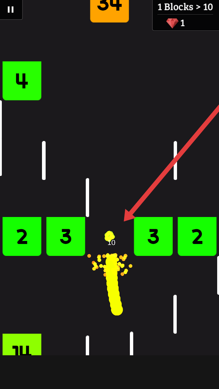 2、需要操控黃色蛇形小球,沿軌道移動,瞄準(zhǔn)帶數(shù)字的方塊,借助彈射機制精準(zhǔn)撞擊,消耗方塊數(shù)值。