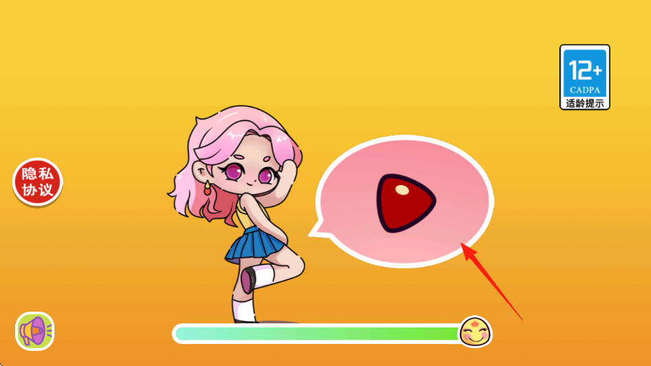 1、點擊箭頭指向的粉色播放按鈕,進入游戲主場景(房間),開始裝扮體驗。