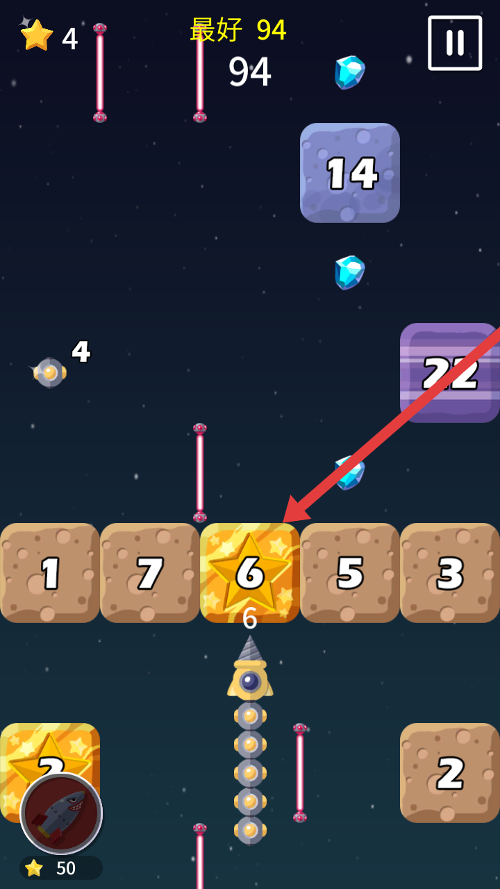 3、游戲內(nèi)操控小球,瞄準(zhǔn)帶數(shù)字的磚塊,借助彈射機(jī)制撞擊消除,通過連續(xù)破壞積累分?jǐn)?shù),推進(jìn)關(guān)卡。