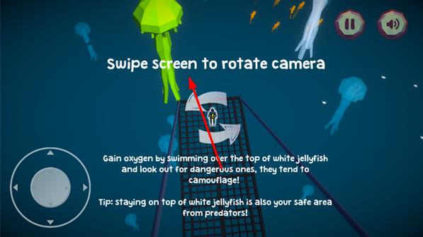 1、進入游戲,玩家化身鯊魚置身海洋,從吞噬比自己小的魚類開始積累能量,熟悉海域環(huán)境,開啟這場獵殺與被獵殺的冒險。