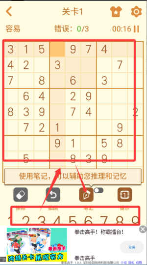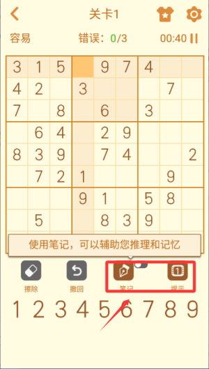 2、三種輔助工具可選,筆記功能標(biāo)記可能數(shù)字,高亮顯示重復(fù)項。自動鉛筆模式幫助理清思路,但不直接提供答案。