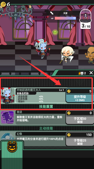 2、戰(zhàn)勝野外魔物獲取大量金幣,用于強化魔王屬性與解鎖強力技能。