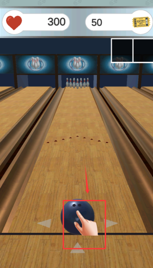 3、通過滑動(dòng)屏幕釋放保齡球,精準(zhǔn)擊倒球道末端的10個(gè)瓶柱完成比賽。