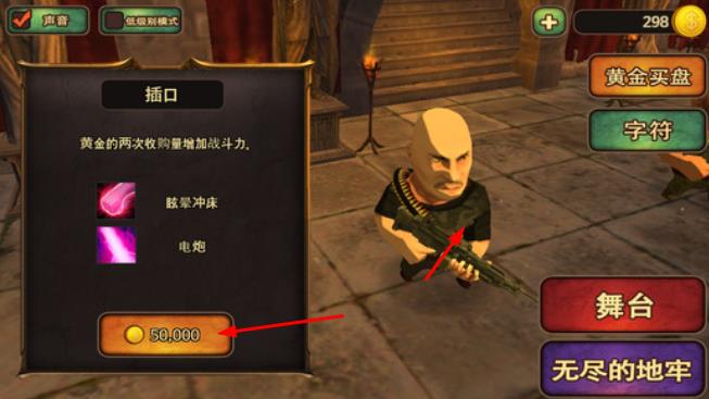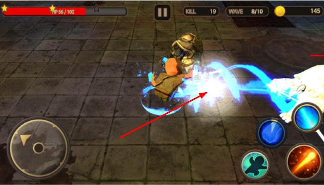 3、在地牢區(qū)域,操控角色完成神奇走位,瞄準(zhǔn)高大怪物射擊,利用金幣購買的道具技能助力,朝著打敗怪物的目標(biāo)努力。
